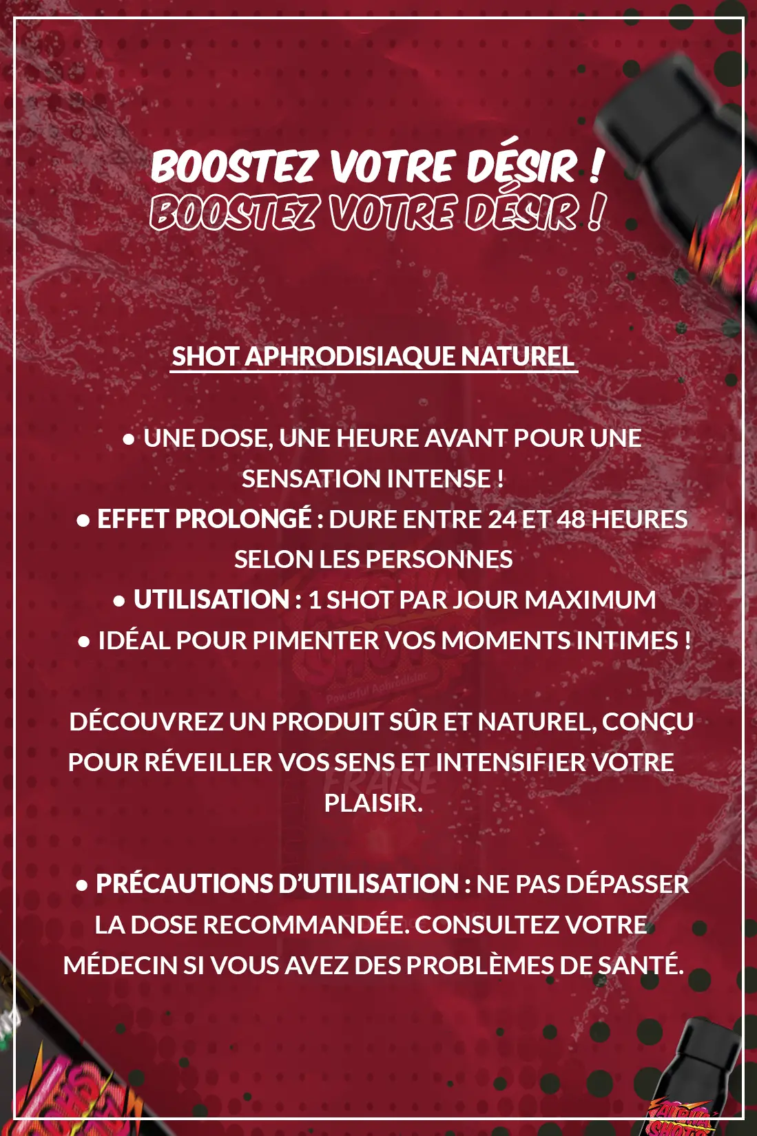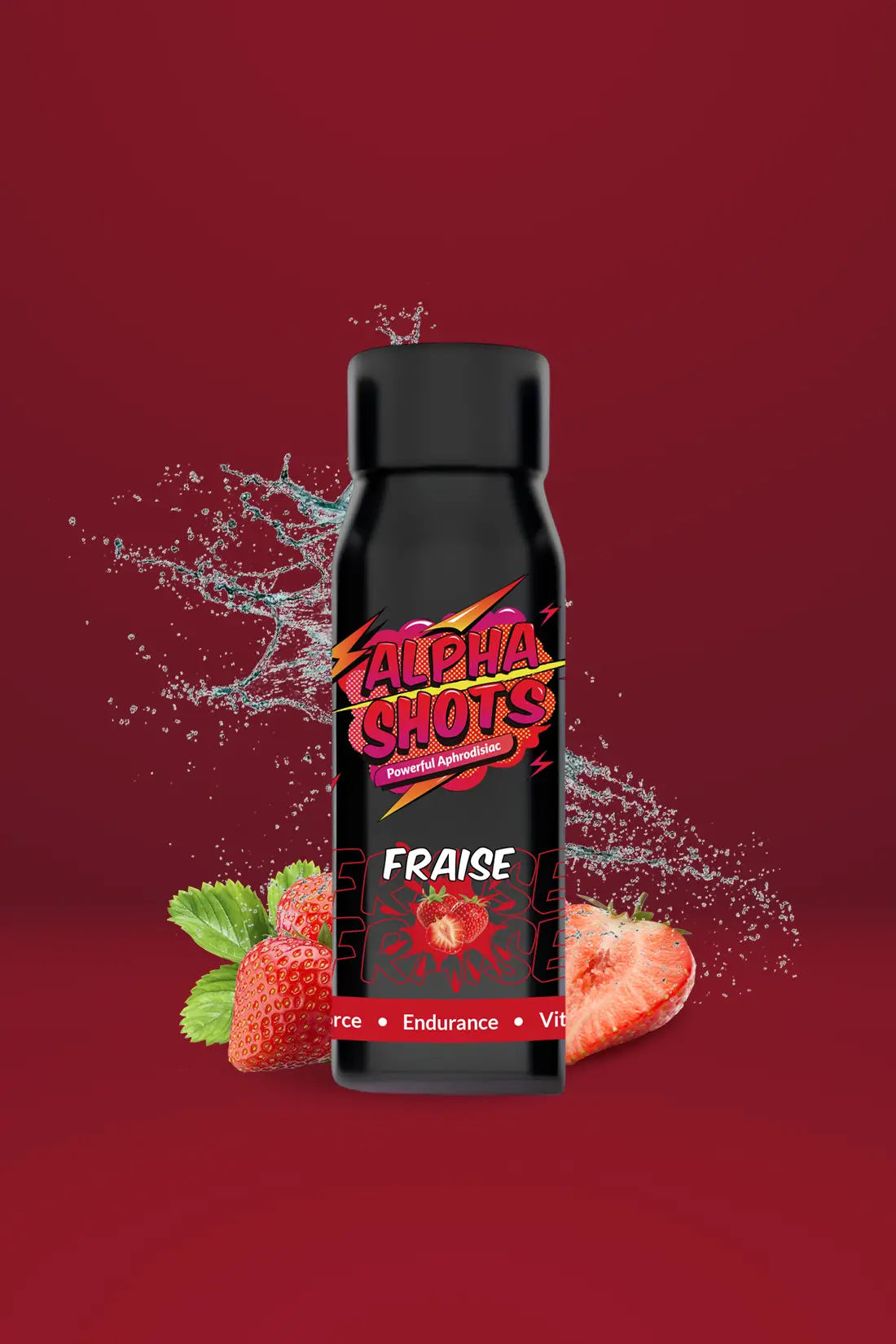 Alpha Shots Fraise 🍓 : un shot aphrodisiaque au goût frais et sucré 🍭 pour une explosion de plaisir ❤️ et d’énergie naturelle ⚡.